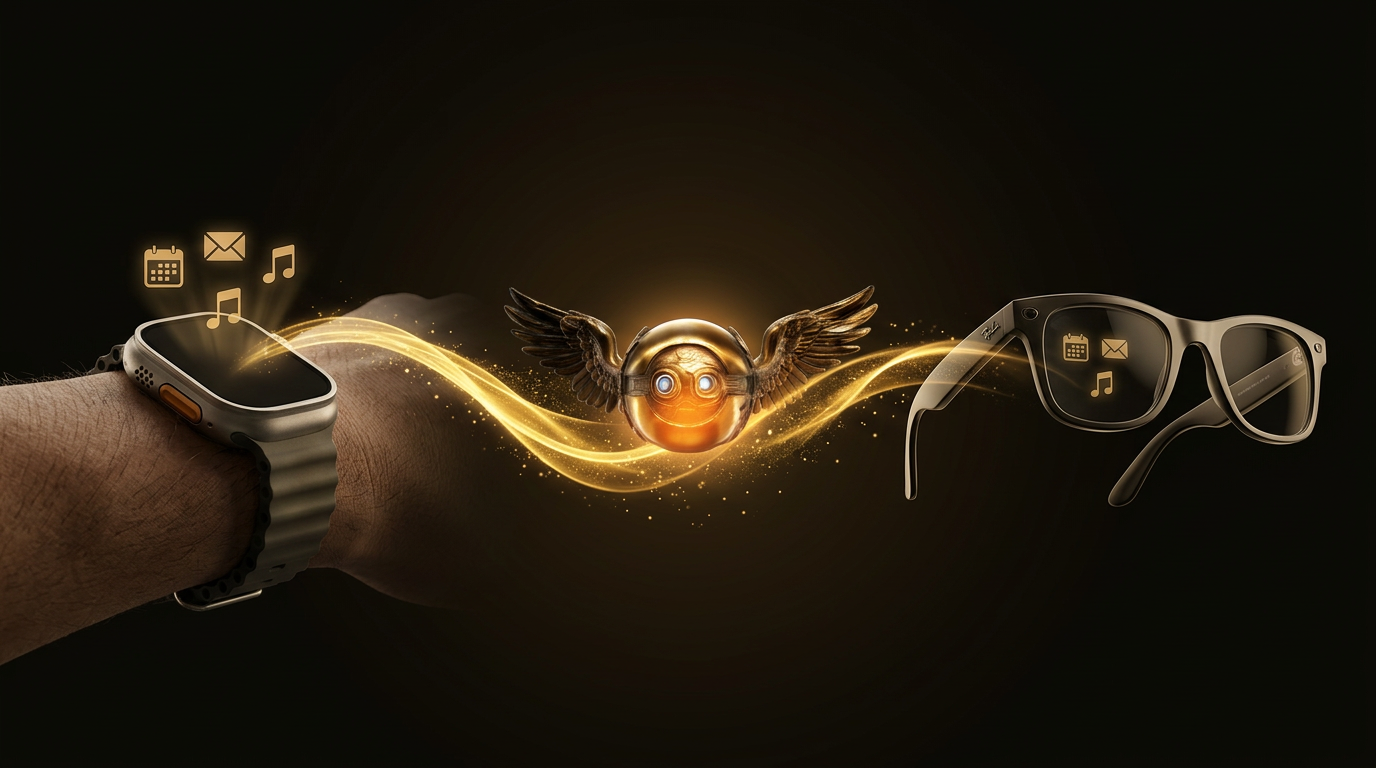These interactions don't change when the input device moves from your wrist to your face. They get better. The same voice command that works on a Watch works identically through glasses. The same autonomous agent that handles your email, calendar, smart home, and food orders from your wrist will handle them from your glasses without a single architectural change.